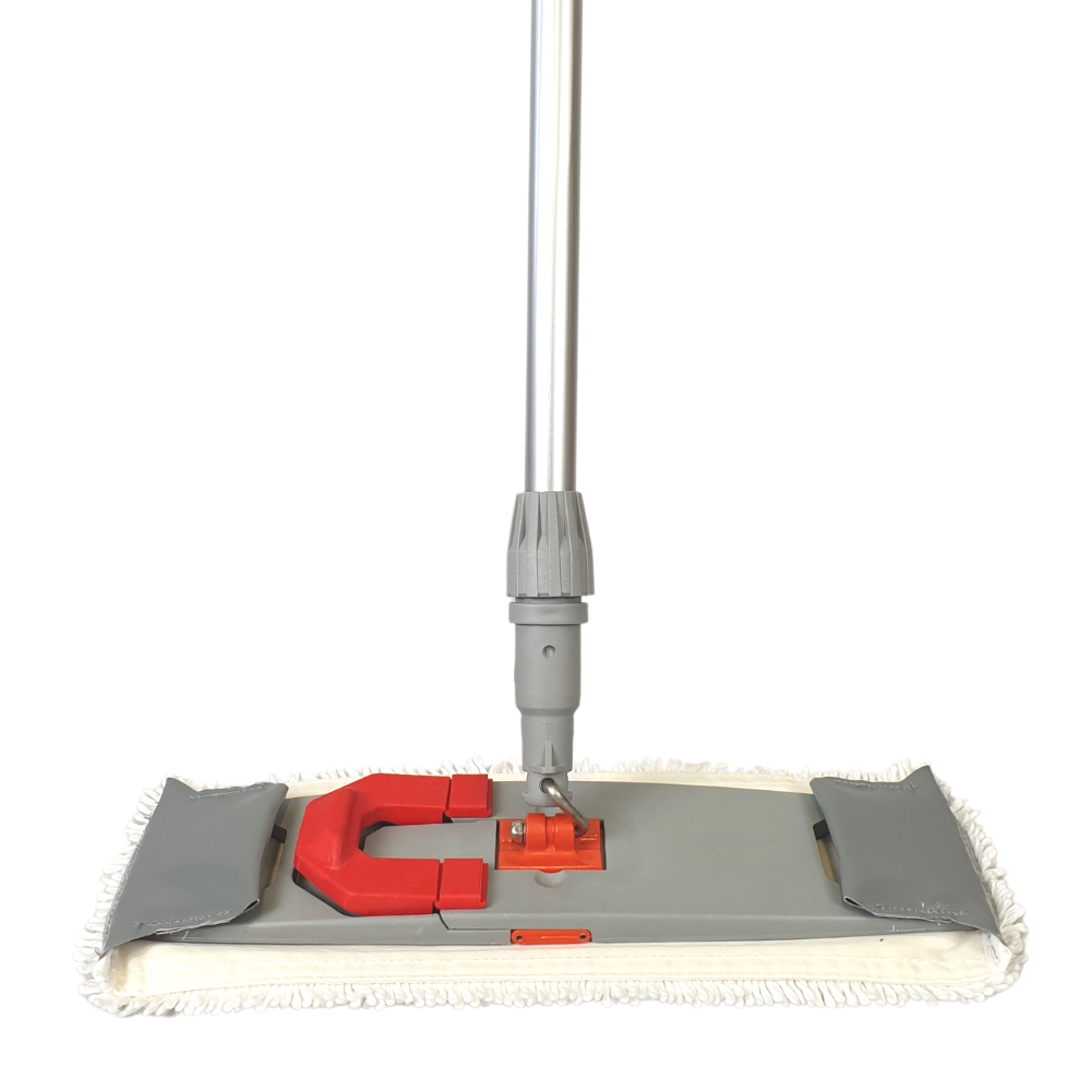Stelaż mopa jest na przegubie metalowym, dzięki czemu jest trwały i łatwo się prowadzi na podłodze. Kij aluminiowy z wygodnym gumowym uchwytem zapobiega powstawaniu odcisków na dłoniach. Przeznaczony do biur, szkół, hoteli, firm sprzątających, szpitali, gabinetów, restauracji, hal magazynowych, zakładów produkcyjnych.