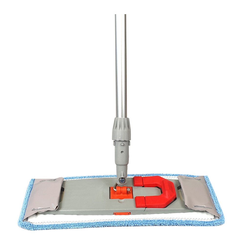Stelaż mopa jest na przegubie metalowym, dzięki czemu jest trwały i łatwo się prowadzi na podłodze. Kij aluminiowy z wygodnym gumowym uchwytem zapobiega powstawaniu odcisków na dłoniach. Przeznaczony do biur, szkół, hoteli, firm sprzątających, szpitali, gabinetów, restauracji, hal magazynowych, zakładów produkcyjnych.