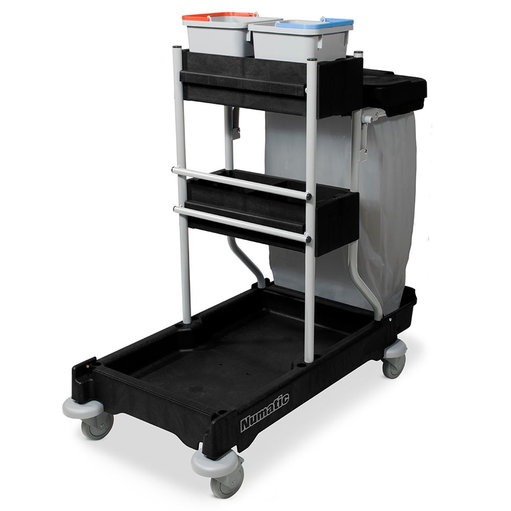 Wózki serwisowe Numatic SM charakteryzują się przede wszystkim solidną budową, niespotykaną wśród konkurencji. Platforma wózka zbudowana jest z tworzywa StructoFoam odpornego na pęknięcia opartej na lekkich obrotowych kołach. Na platformie umieszczono solidny stelaż wykonany z grubych okrągłych profili metalowych, które stanowią oparcie dla pozostałych elementów wyposażenia wózka do sprzątania Numatic.